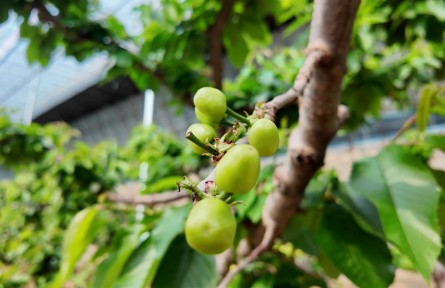 从电商“开路”到樱桃“棚主” 万金栋在大棚里查看樱桃长势。 别人种樱桃,是从田间地头往市场走;...