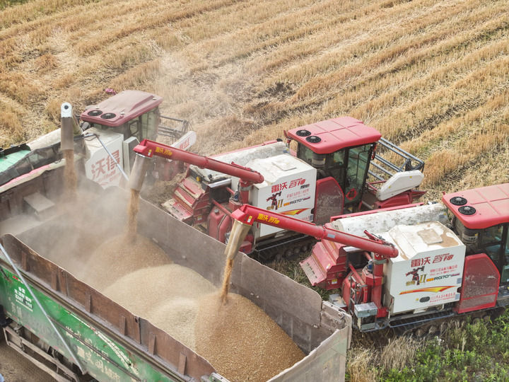 麦收总体进度过半、冬油菜收获完毕——正在绘就的丰收图景背后,是广大农民克服旱情等不利因素的辛勤耕耘,是智慧农业提质升级的创新探索,也是各地各部门多措并举的强大合力。