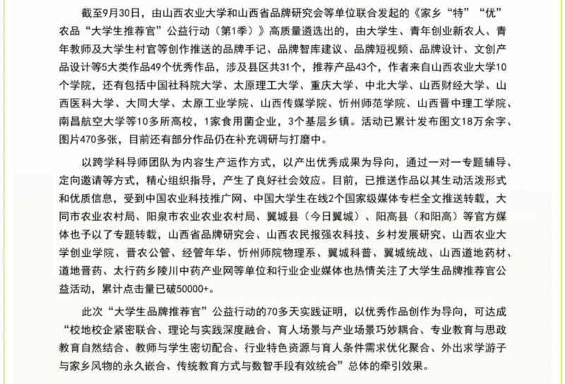 山西农业大学、山西省品牌研究会举办农产品品牌大学生推荐官公益行动 2025.08.04