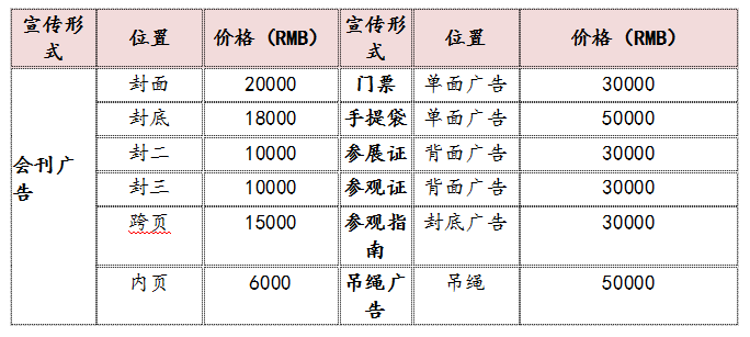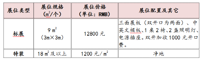 展位价格: