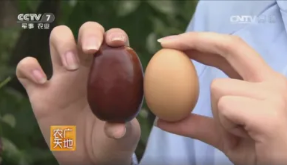 从外形上看,果实呈倒卵形,上细下粗,酷似古代酒器“壶瓶”,这一只只小小的“红釉瓶”辨识度极高;单果重可达25~30克,最大达35克,比普通红枣重5~10克,拿在手中沉甸甸的,大果甚至比鸡蛋还大(小果2~3厘米、中果3~5厘米、大果5~6厘米),拿在手中满是扎实感。