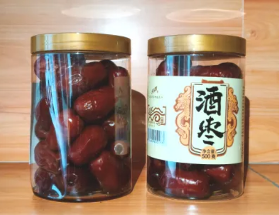 酒枣是壶瓶枣最具代表性的传统加工品,沿用古法制作。选用新鲜饱满的壶瓶枣,经挑选、清洗、晾干后,放入陶瓷缸,以高度白酒浸泡、密封腌制。腌制后的酒枣色泽红润,兼具枣的清甜与酒的醇香,口感软糯有嚼劲,且能长期保存,是冬季待客、节日馈赠的特色佳品,每一口都是太谷人的饮食记忆。此外,笼屉蒸熟的壶瓶枣、自然晾晒的红枣干、真空包装的即食枣片也深受喜爱,无论是日常零食还是煲汤熬粥,都方便又营养,成为家庭“常备品”。