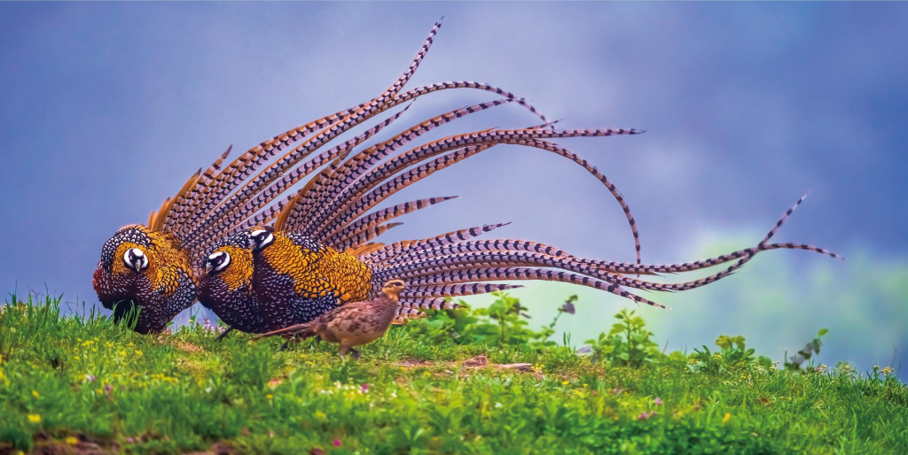 这是河南董寨国家级自然保护区的“白冠长尾雉三兄弟”。张怀强 摄(新华社通联)