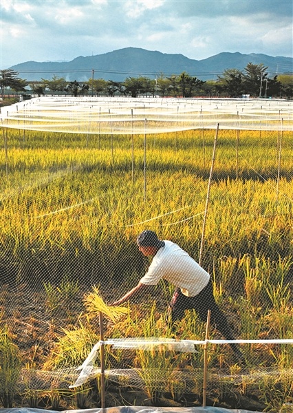 活体保存,是资源圃的一大亮点。为还原原生环境、让野生稻保持原始状态,科研人员每隔一段时间,就要给野生稻“理发”——将长高的植株剪短,以避免野生稻根部萌出新株、种子自然脱落造成种质混杂。今年3月,位于三亚的国家南繁科研育种基地,利用活体野生稻优良特性育种的试验田迎来丰收,进一步推动了优质水稻种质资源的研究。