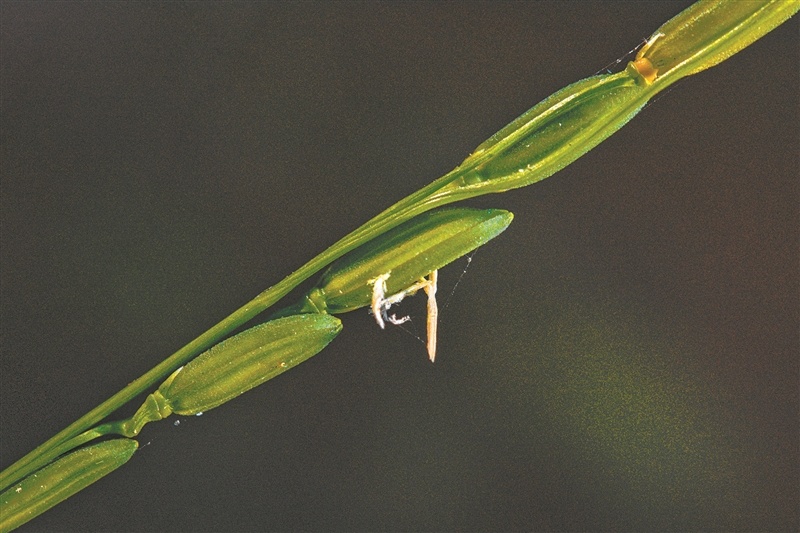 2024年1月30日,野生稻科考队在三亚山区发现的疣粒野生稻。