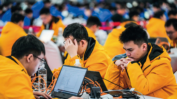 参赛选手在贵阳举行的第四届“网鼎杯”网络安全大赛决赛阶段比赛中。(图片来源:《瞭望》新闻周刊)