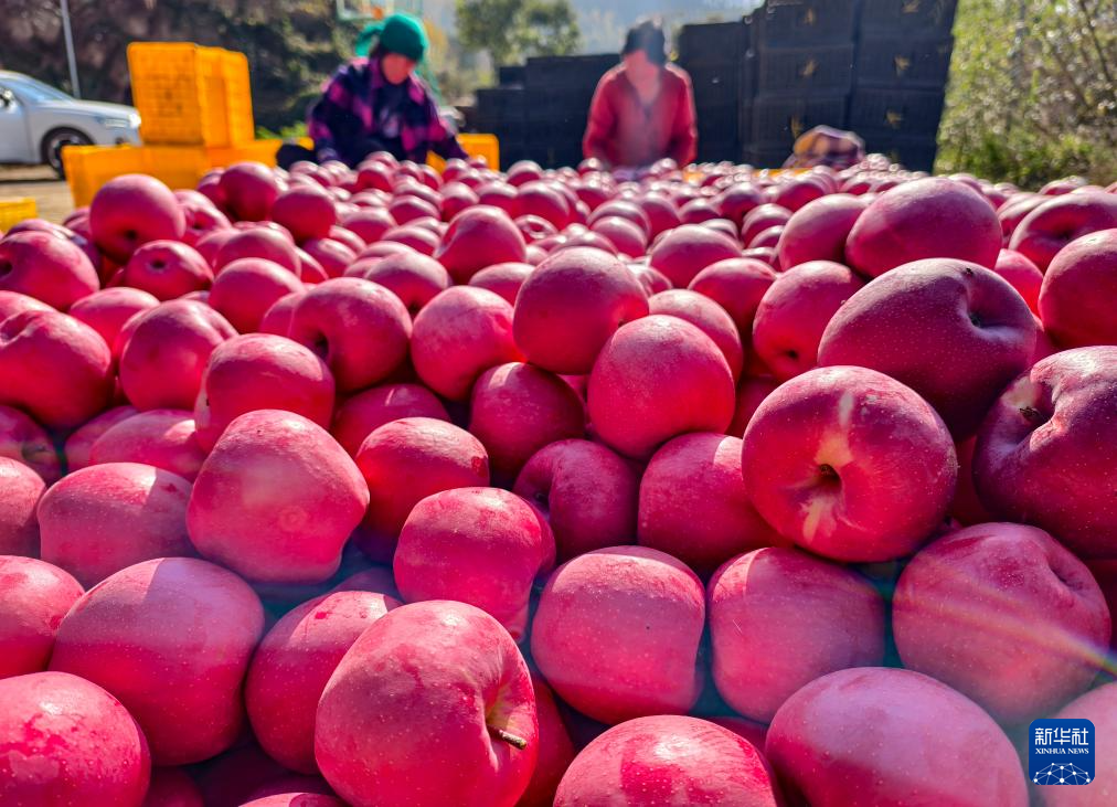 10月30日,甘肃省平凉市静宁县贾河乡农民在分拣苹果(手机照片)。新华社发(侯崇慧 摄)