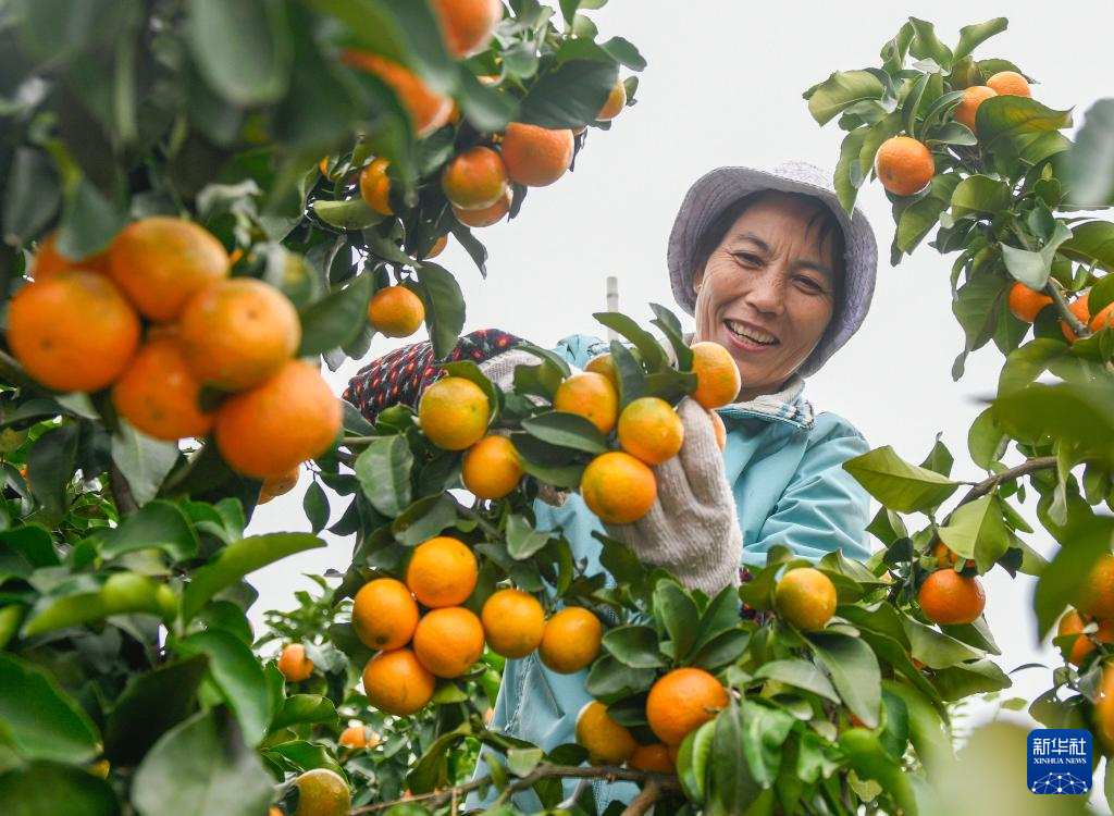 11月2日,湖南省永州市道县蚣坝镇兴桥村村民在采摘沙糖桔。新华社发(蒋克青 摄)