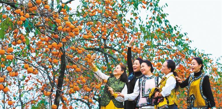 10月26日,游客在四川省乐山市五通桥区汤家坝村柿子园游玩。当地以柿子产业为依托,推动农文旅融合发展,助力乡村全面振兴。李华时 摄(中经视觉)