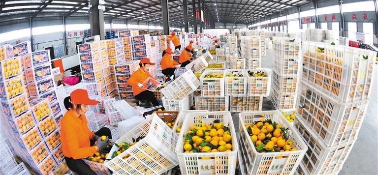 10月30日,湖北省宜昌市夷陵区星翔农产品专业合作联社社员在包装“夷陵红”柑橘。目前,夷陵柑橘种植面积31.55万亩,年产量86万吨,远销俄罗斯、马来西亚等20多个国家和地区。张国荣 摄(中经视觉)