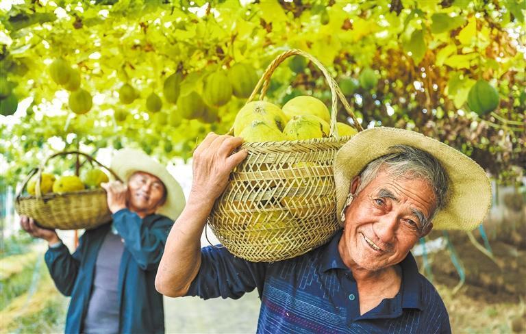 11月1日,安徽省马鞍山市博望区新市镇澄心村润丰源家庭农场,村民在搬运瓜蒌。瓜蒌果已成为当地群众增收致富果。王文生 摄(中经视觉)