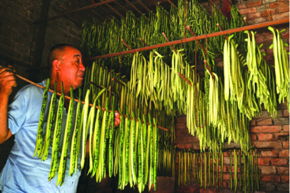 在调研期间,我在平定后沟村亲眼见过黄瓜干的制作:村民蹲在田间,用煤渣粉细细裹匀黄瓜种子;妇人坐在院里,以玉米皮轻柔缚住藤蔓,“松一分易折,紧一分伤茎”的老规矩烂熟于心;到了烘烤环节,匠人守在无烟煤炉旁,每隔半个时辰便伸手探温,50℃的恒温里,是对古法制艺近乎执拗的坚守。那一刻我忽然明白,所谓传承,从不是书本上冰冷的文字,而是老辈人手中的温度,是代代相传的细致与虔诚。