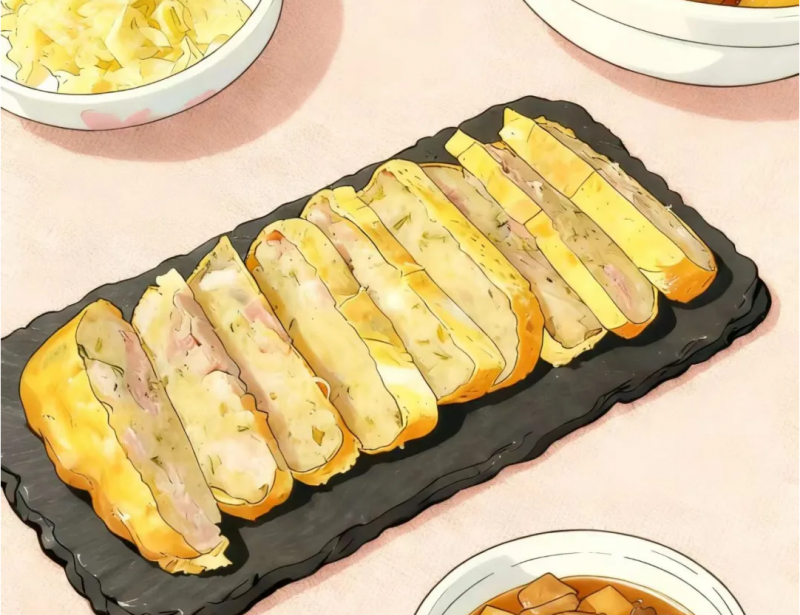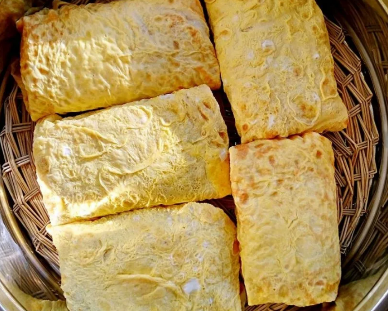 将包好的卷卷摆放到笼屉中,采用传统方法上锅蒸熟。蒸好后,若凉吃需先取下蒸笼晾凉再取出,避免烫破蛋皮;热吃可直接切块。晾凉后的卷卷放在案板上,用另一块案板压上重物,根据卷卷承受能力调整重量,压制约1个多小时。最后在表面抹上香油防蛋皮干硬,成品晾凉后可冷藏储存。吃的时候,搭配上用蒜末、香醋、香油、辣椒油等调制而成的蘸料,酸辣开胃,让太谷卷卷的风味更上一层楼。