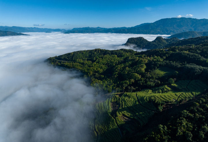 在云南省临沧市沧源佤族自治县拍摄的云海茶园。新华社记者 江文耀 摄