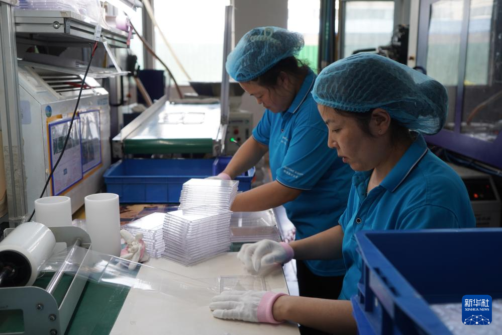 工人在江苏机器时代文化创意有限公司生产车间作业(7月23日摄)。新华社发(刘臻睿 摄)