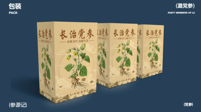 在设计这一套关于潞党参的品牌提案之前,我只知道他是我家乡的一味药材,经过一系列的材料收集让我才真正了解了他,他和其他地区的党参不同,狮子头,菊花心,他有他自己独特的性格和品质,和他独特的优点,设计不是只做视觉,是让更多的人了解到他,让有需要的人找到他,让更多的人了解到我家乡的特产,让家乡特产走出去,让需要他的人走进来,让更多的人了解他,为家乡出一份绵薄之力,其中老师们精心指导,一次次的帮我修改,让我知道我们有一个共同的目标让更多的人了解到我的家乡,我家乡的特产,让他可以帮助到更多的人。