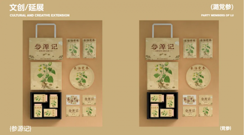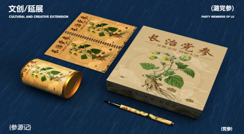 各类文创产品(如笔记本、笔筒、钢笔,手提袋、包装礼盒、卡片等)通过不同载体,多维度传递潞党参的文化与价值,助力品牌从药材领域向文化创意领域延伸,加深消费者对潞党参文化的认知与喜爱。
