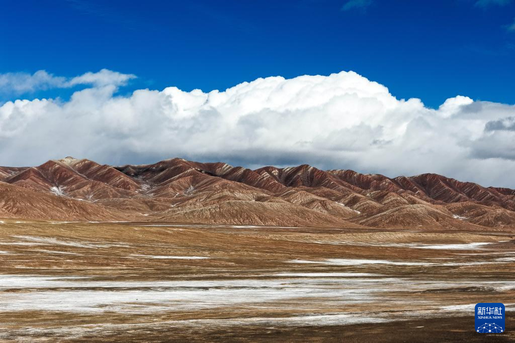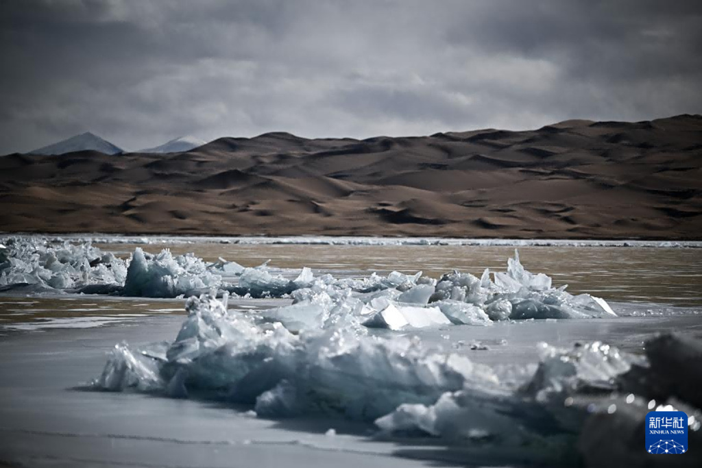 在阿尔金山国家级自然保护区,库木库里沙漠边的小沙子湖出现冰推景观。新华社记者 辛悦卫 摄