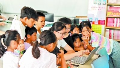 三境村利用暑期儿童关爱班的契机,专门安排了AI启蒙教育。记者高峰 摄