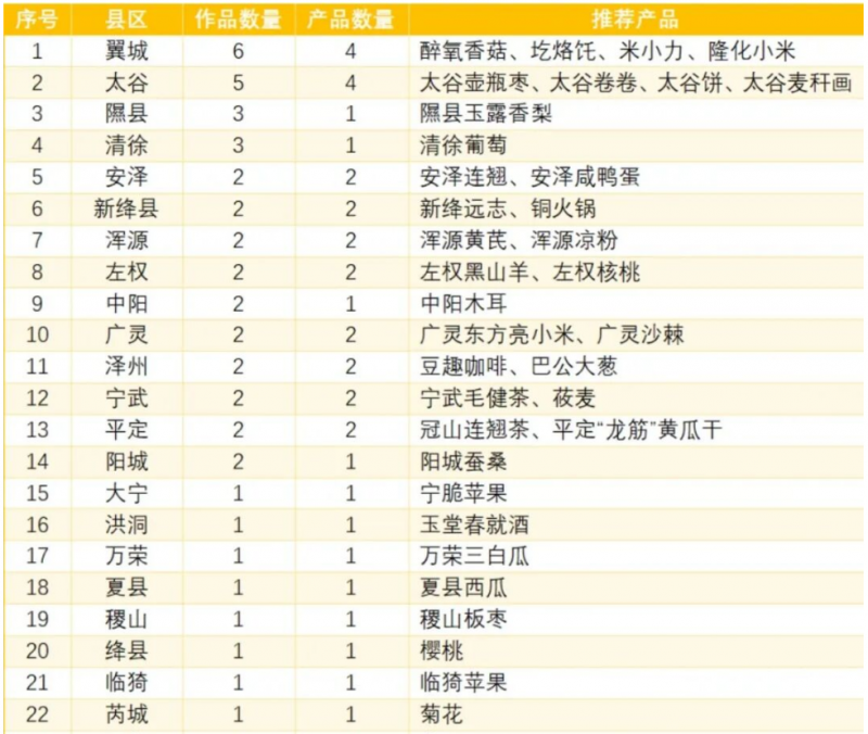 翼城(6篇):历山之麓“醉氧香菇”探秘录3;东升与他的“醉氧山珍”品牌故事4;翼城风味“圪烙饦”非遗文化探秘录6;甜糯玉米品牌“米小力”长成启示录12;翼城隆化小米的品质探秘22;石上乡愁(品牌短视频3)