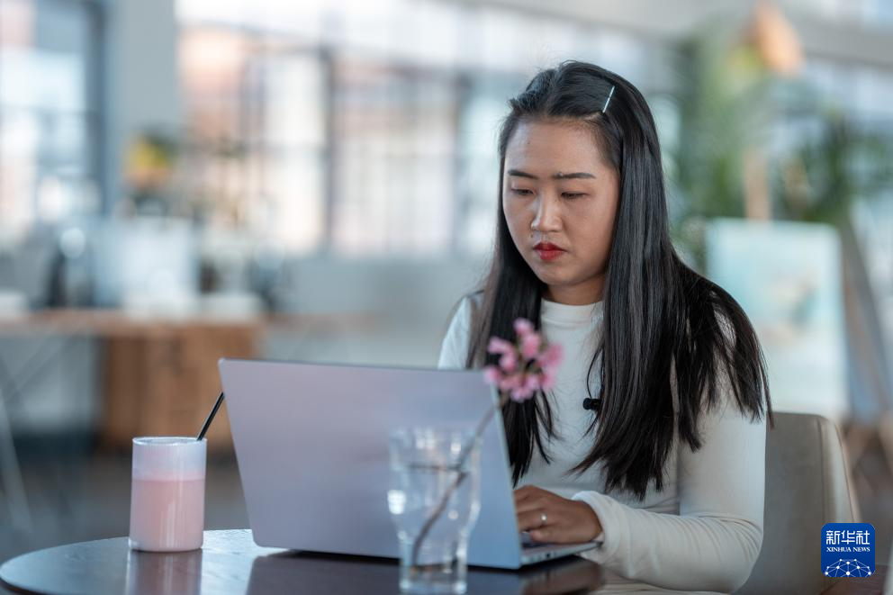 12月20日,魏春在大渡岗乡“热土工作室”设计新的茶饮产品。新华社记者 陈朔 摄