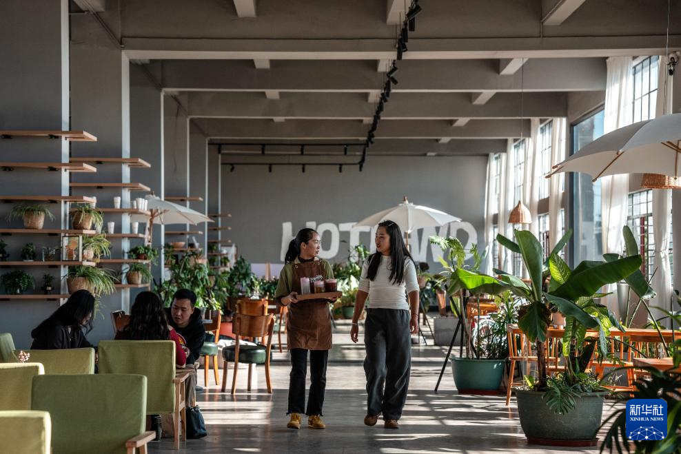 12月20日拍摄的“热土工作室”餐饮区域一景。新华社记者 杜潇逸 摄