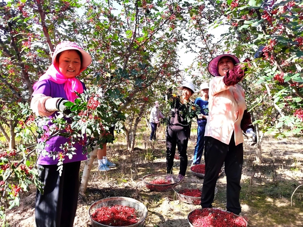 马关镇花椒采摘现场。