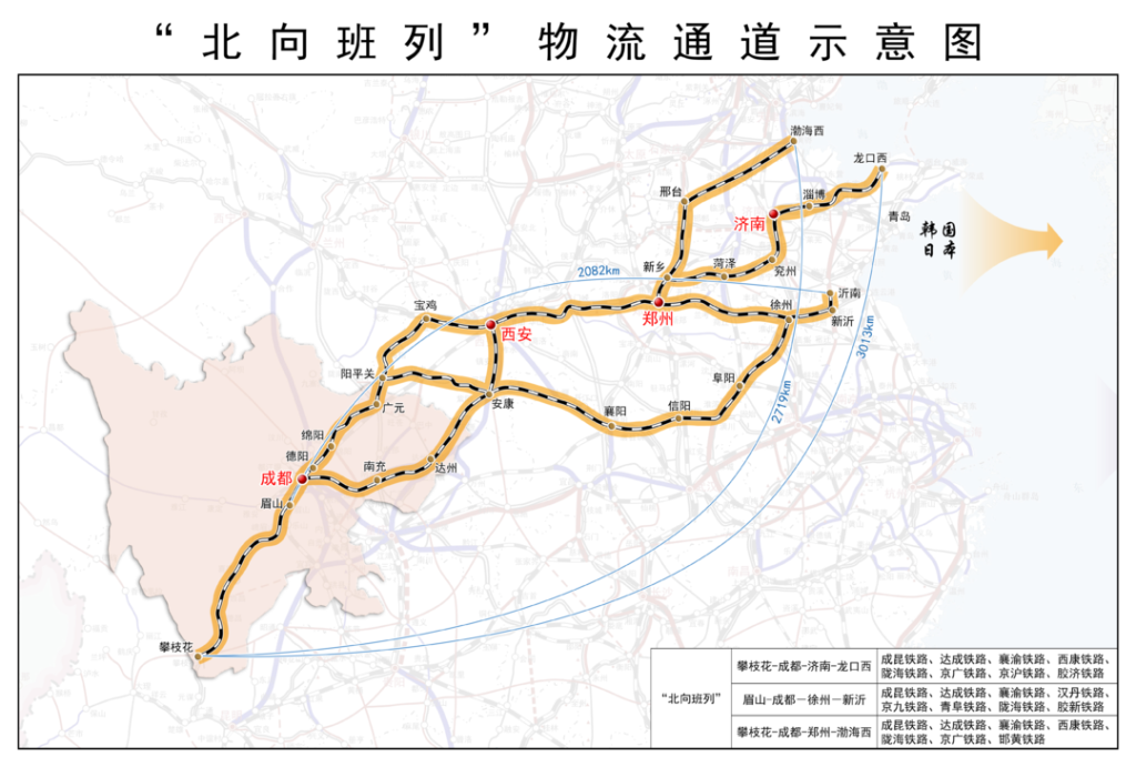 此前,川鲁两地物流95%以上依靠公路运输,长期面临运价波动频繁、组织程度不高等问题。2025年7月22日,“北向班列”正式开通,充分发挥山东省环渤海港口群的区位优势,释放四川省广阔市场的内需潜力,推动两省资源要素“双向奔赴”,促进“内陆生产、沿海输出”“沿海研发、内陆转化”的跨区域协作模式升级。