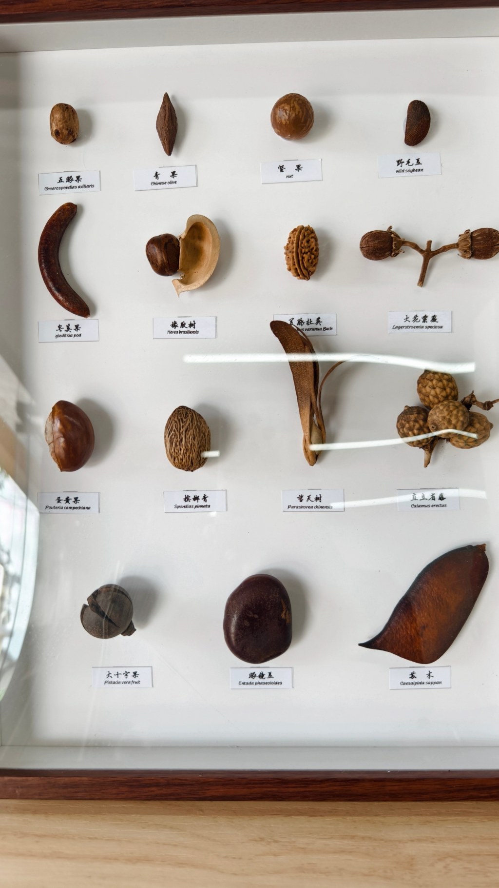 阳光穿过窗棂,落在这些种子的脊线上,勾出淡淡的金边。旅途中我认识了一位从曲靖来的游客田孟春。她正举着相框端详:“往常来西双版纳,带走的都是吃食。这个好,可以把雨林的记忆带回家。”她的话虽轻,却点出了这些种子的灵魂。此刻,它们不仅是一件纪念品,更是一份可以握在掌心、带往远方的“生机”。