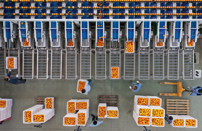 脐橙“出山”坐上无人机,成为一道“科技新景”;脐橙有了自己的“体检报告”,果实分选现场的烟火气与智能化气息交织交融;脐橙经过精深加工,实现果肉到果皮的综合利用,真正实现了“把一颗橙子吃干榨净”。