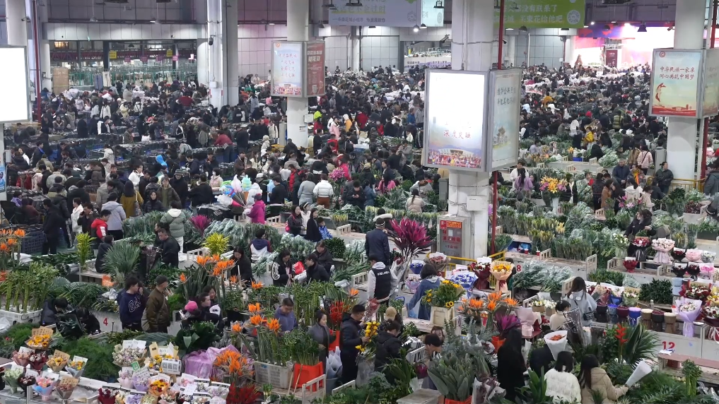 春节前夕,亚洲最大的鲜切花市场云南昆明斗南花市迎来“赶花集”热潮。