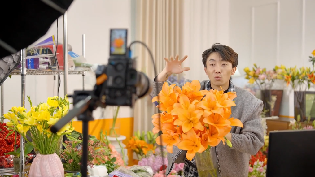温室中科技赋能培育的蝴蝶兰等年宵花供不应求,工人们正加紧包装发往全国。线下市场里,腊梅、百合等备受青睐,市民游客争相选购。线上直播间同样火爆,电商通过“仓储—直播—发货”一体模式,让腊梅等鲜花日均销售额达数百万元。