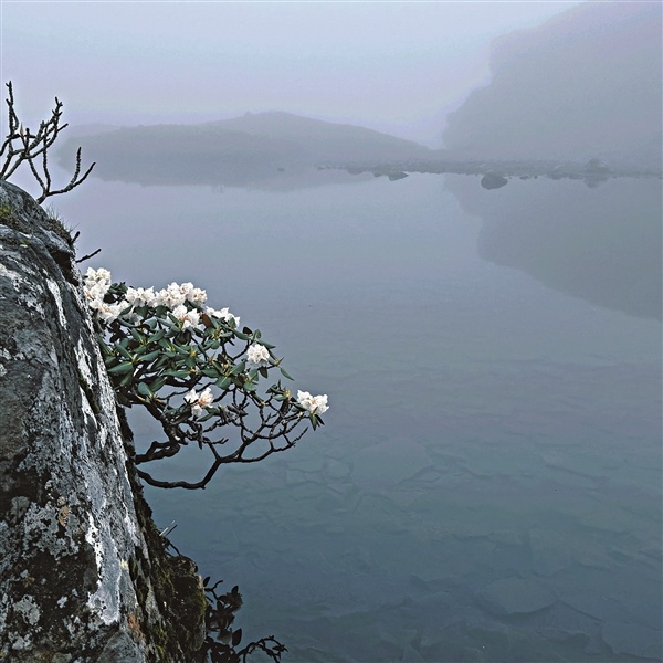 在高海拔岩壁上,乌蒙宽叶杜鹃以虬(qiú)曲的枝干和革质叶片适应强风与低温。