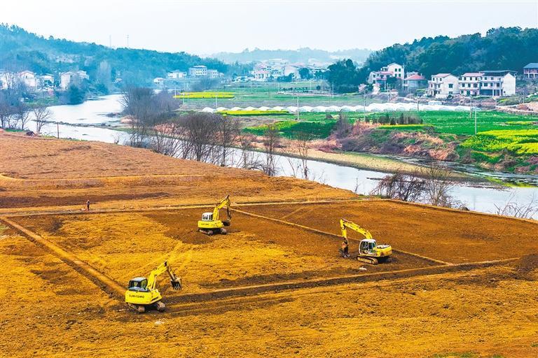 2月23日拍摄的湖南省双峰县梓门桥镇青石铺村高标准农田项目建设现场。2025年我国支持新建和改造提升高标准农田7568万亩,累计建成超10亿亩。李建新 摄(中经视觉)