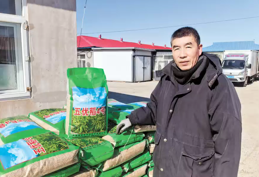 “买种子了吗?”记者问。“走,带你去看看。”杨雷带领记者走进合作社的大院,院里码放着一垛清一色的“五优稻4号”稻种。杨雷说:“这是上午刚刚拉回来的,一会儿就分发到社员手里,再过20天就该泡种育苗了。种子到家,咱这心里就更有底气了。肥料也预订了,等育完苗,打个电话就能送来。”