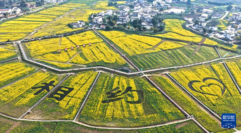 四川省泸州市泸县喻寺镇谭坝村的油菜花田(无人机照片)新华社发(刘学懿 摄)