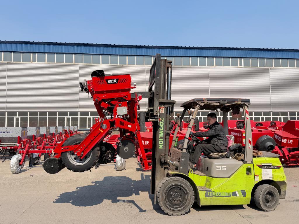 在黑龙江德沃科技开发有限公司,播种机产品正准备发货。新华社记者 孙晓宇 摄