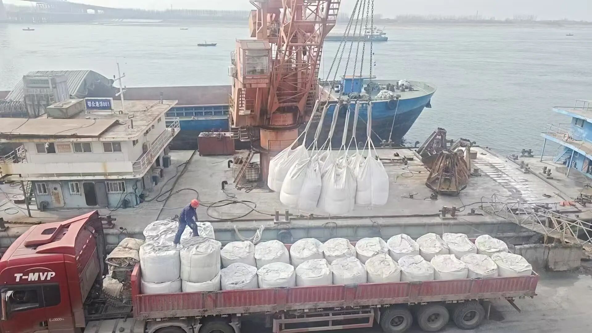 为确保春耕用肥及时到位,鉴于此批货物数量较大,湖北东圣早早谋划,在春节前便科学制定详细生产计划,完成磷肥库存储备,为节后农资发运筑牢货源基础。春节过后,农资运输迎来多重考验,农历正月初五正值假期尾声,社会车辆未完全恢复运营、运输船舶资源紧张,成为磷肥从工厂发往港口的最大阻碍。面对这一难题,双方通力协作,主动出击积极寻找合规运输车辆,高效完成工厂至长江码头的集港工作;同时多方沟通协调,精准落实江船运输资源,打通磷肥外运的首段关键链路。