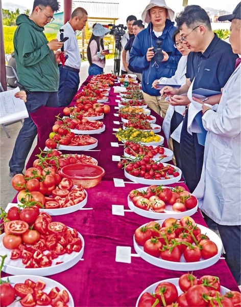 2026年3月31日,2026种子大会暨南繁硅谷论坛期间,展示的包括西红柿在内的“好吃系列”品种。大会组委会供图