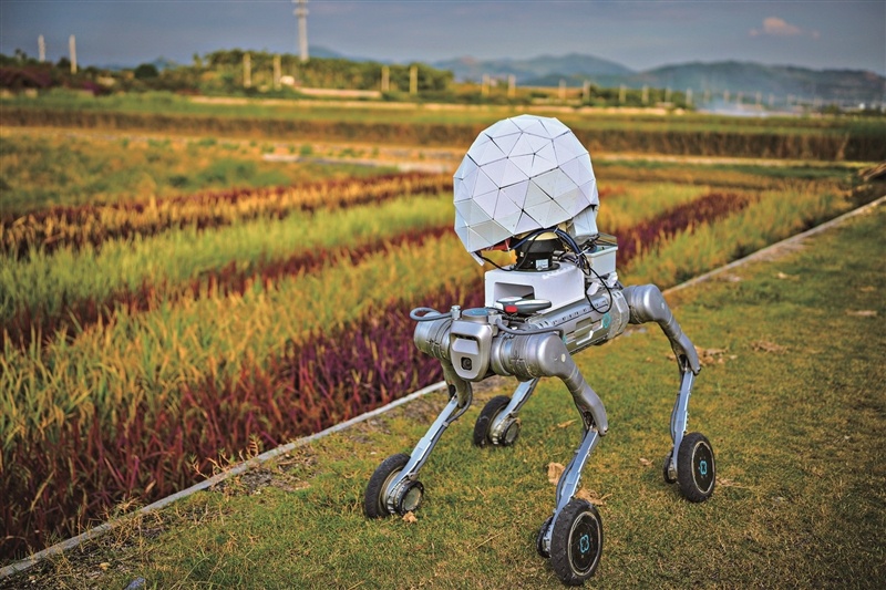 2025年12月8日,三亚崖州区国家野生稻种质资源圃,机器狗在采集水稻数据。张茂 摄