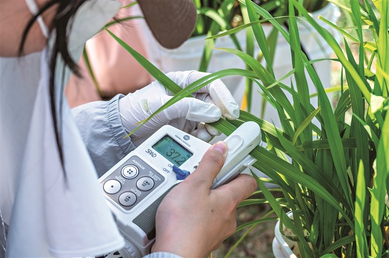 2026年3月18日,海南三亚,科研人员在田间监测植物生长状况。视觉中国供图