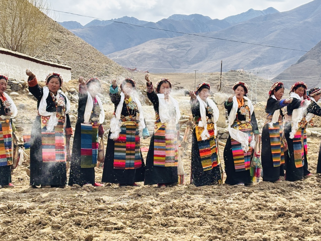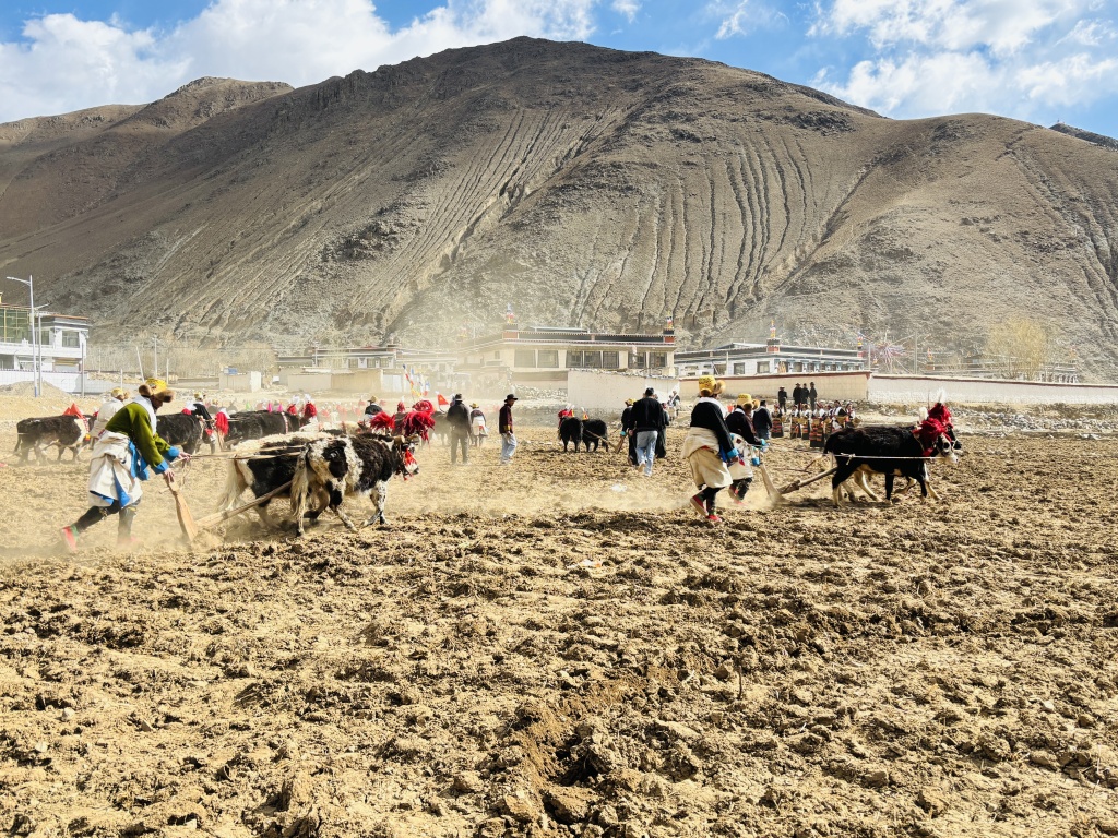 煨桑袅袅、哈达飘飘,村民们按照传统习俗举行祈福活动,“二牛抬杠”这一传承千年的传统耕种习俗在田间重现,村民们手捧酥油茶、青稞酒,敬献哈达,抛撒糌粑、放声歌唱祈求风调雨顺、五谷丰登、人畜兴旺。伴随着清脆的吆喝声,犁铧破土、农机轰鸣,传统耕作方式与现代农业机械齐头并进,一粒粒饱满的种子播撒沃土,勾勒出生机勃勃的春耕画卷。(仓木拉 记者李鹏)