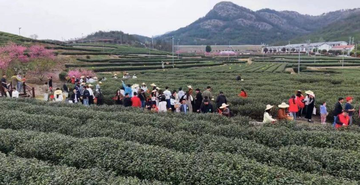 阳春三月,三里城镇茶叶公园等地吸引大量摄影爱好者与游客前来赏花、采茶。
