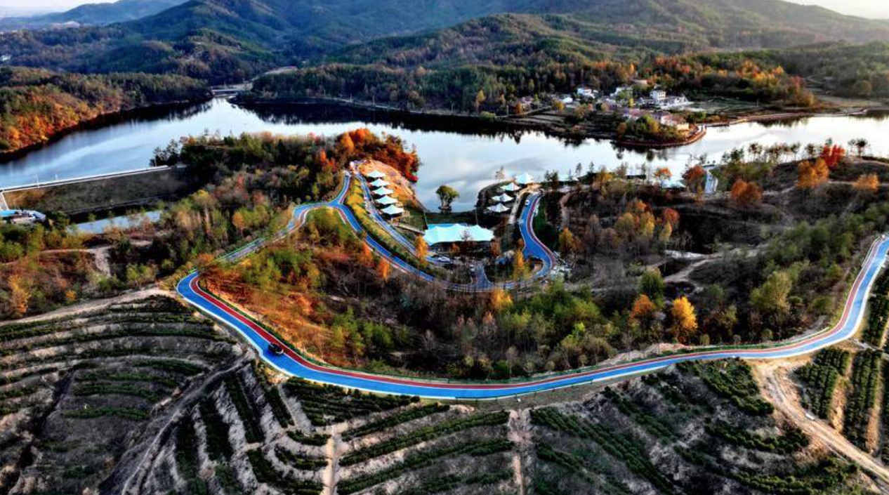 刘集镇店岗村伴山金鼓・茶乡营地景区依托530亩左程河茶叶公园和260亩水库,打造茶马古驿、茶田观景、茶道漫步、农家乐等多元场景。