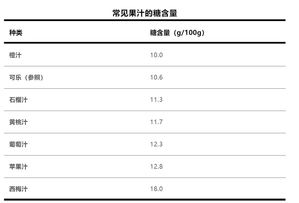 榨一杯果汁往往需要多个水果。以橙汁为例,一杯橙汁通常需要3~5个橙子,这意味着你可能在不知不觉中摄入了几倍的糖分。数据显示,一些鲜榨果汁的糖含量甚至接近或超过可乐。比如,一杯苹果汁的含糖量就高于一罐可乐。