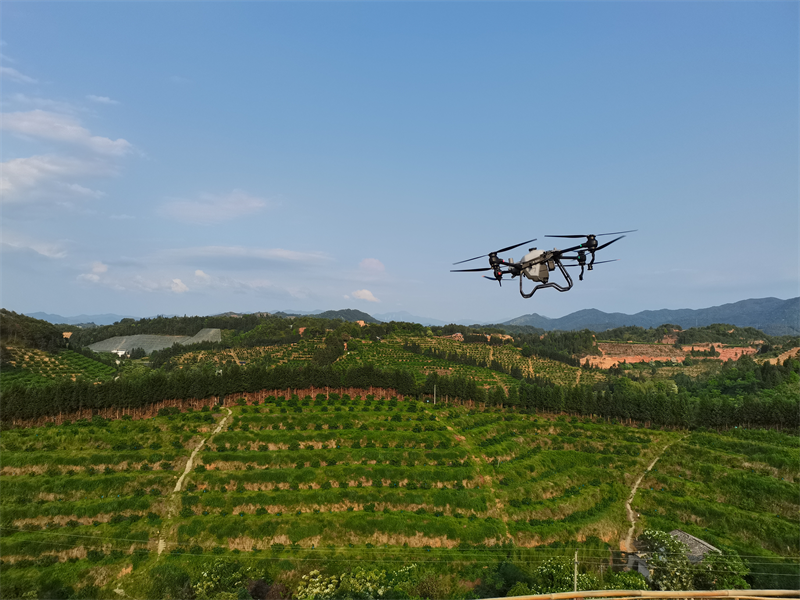 安远县无人机助力果园农事服务。徐茂东摄