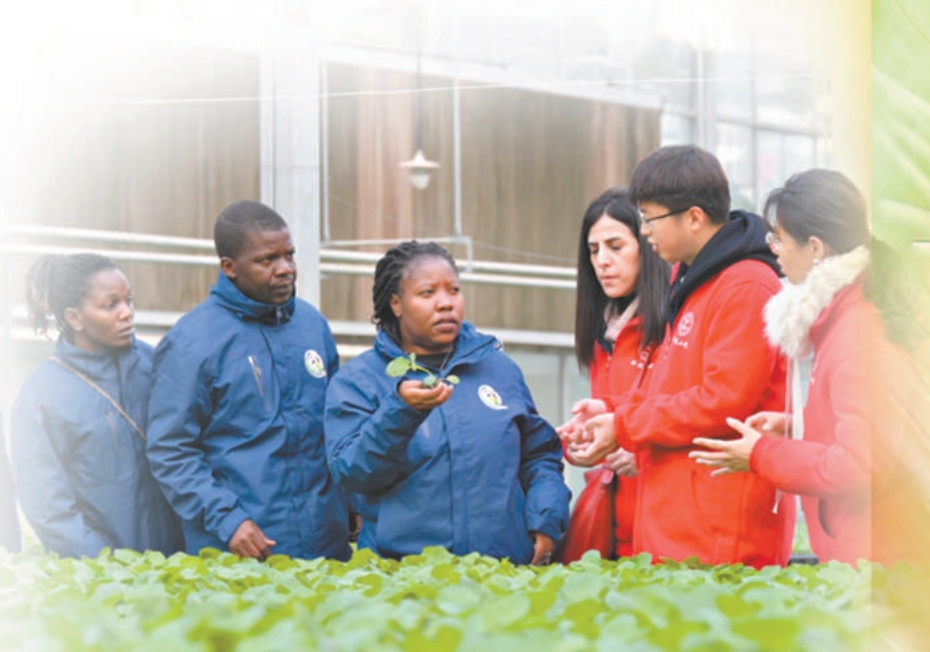 非洲科技小院留学生在蔬菜育苗基地听取生产技能讲解。