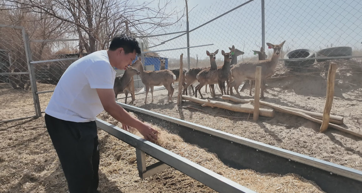 在四十七团荣得鹿养殖基地,梅花鹿、塔里木马鹿、天山马鹿悠闲地散着步。负责人王荣正忙着清理圈舍、调配饲料,手脚麻利,“目前基地养了80多头鹿,其中梅花鹿就有60多头,还有几头本地的塔里木马鹿和天山马鹿,个个长得壮实。”