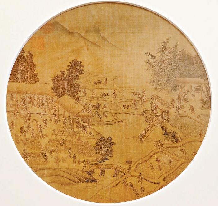 宋代《耕获图》描绘了当时春耕与秋获的不同劳作场景。