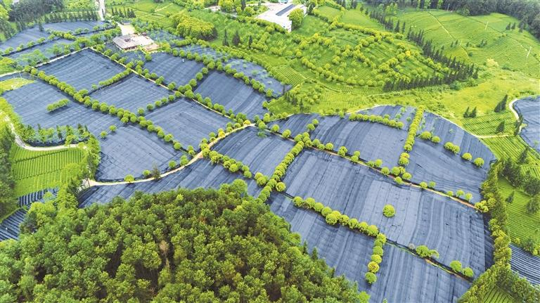 昔日闲置的夏秋茶成了抹茶原料的“香饽饽”,图为翠色葱茏的江口抹茶原料基地。(贵茶集团供图)
